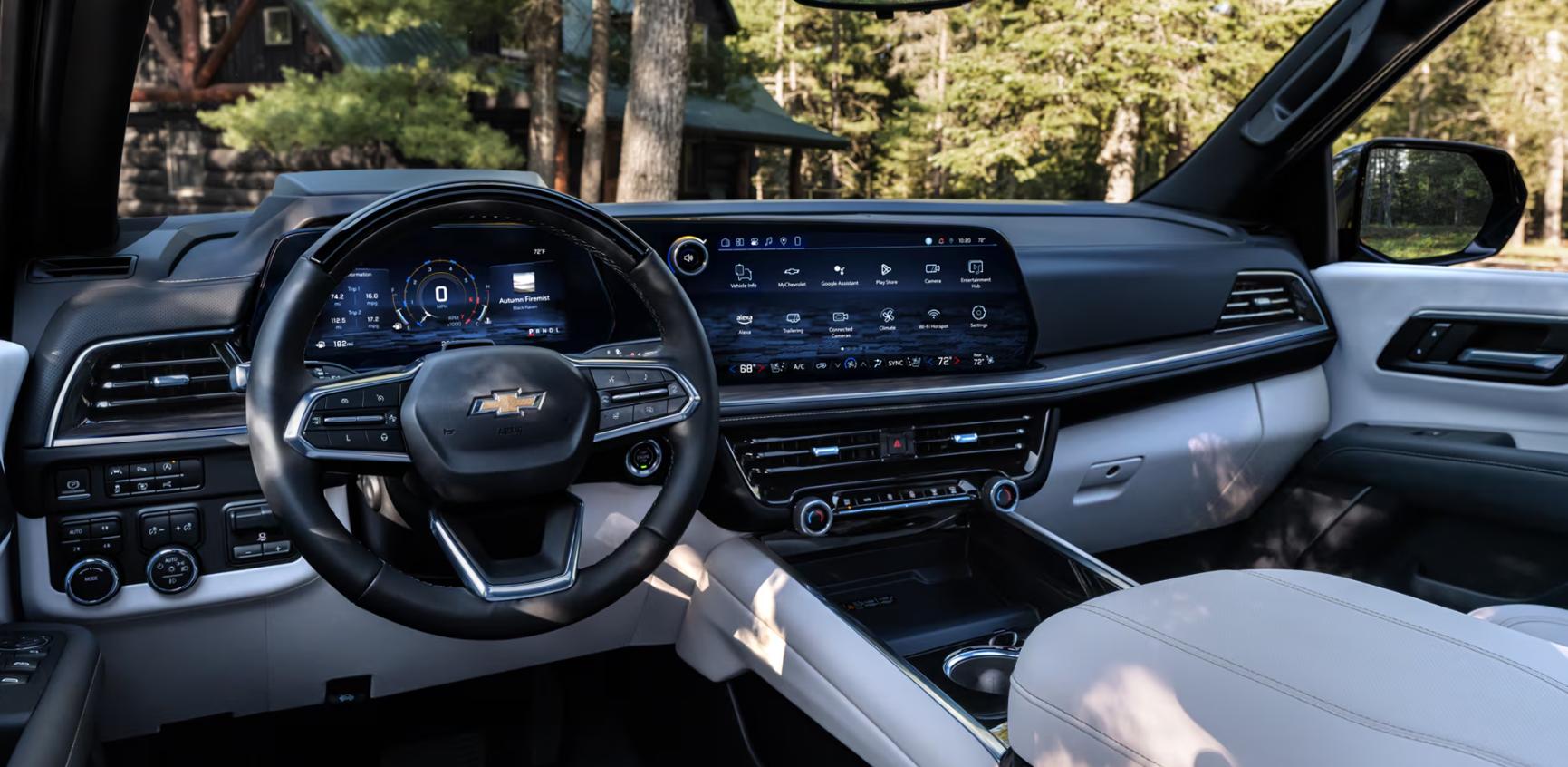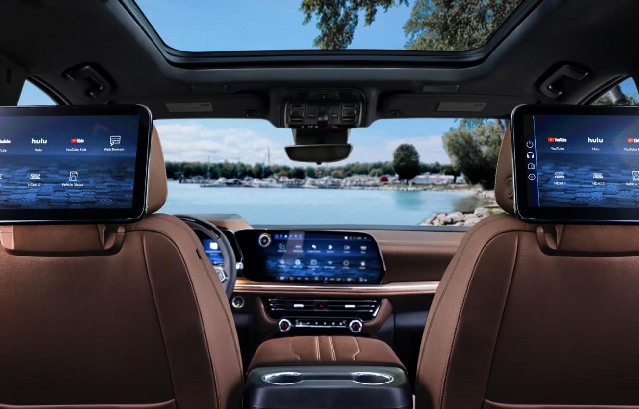 2025款雪佛蘭Suburban Z71在內飾方面,延續了家族式設計風格,中控屏幕的尺寸為17.7英寸,第二排還可以選裝娛樂系統,前排扶手也是相當寬大,空調操作區采用實體按鍵,內飾的用料也是較為扎實,采用大量皮質包裹,Z71版本還支持主動剎車,交叉路口緊急自動,增強版主動剎車系統。