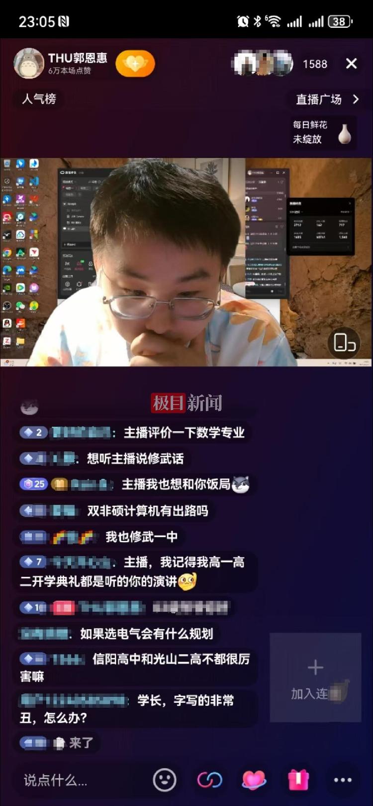 開播前,郭恩惠想著就播一個(gè)小時(shí)試試,估計(jì)直播間能有十幾個(gè)人就不錯(cuò)了。沒想到直播一開,大量網(wǎng)友涌入,一直都持續(xù)有一千多人在線。網(wǎng)友詢問的大部分是學(xué)校和專業(yè)的問題,郭恩惠就給他們講自己的理解和建議。另外,直播間也有少量黑粉在罵他,但郭恩惠認(rèn)為自己的選擇沒做錯(cuò),就跟黑子們對(duì)噴。