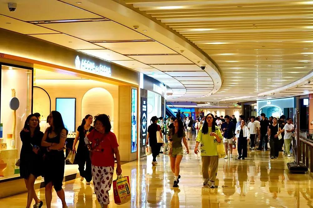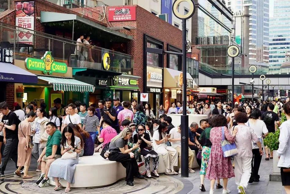 “巨輪”的熱度還強勢帶動周邊商圈。星巴克臻選上海烘焙工坊中午就開啟限流模式,直到晚上9點仍顧客不斷;興業太古匯商場客流爆棚,服裝店、電子產品店人氣滿滿,餐飲店排起長隊,茶飲店更是爆單,阿嬤手作、去茶山等店小程序點單頁面顯示前方制作杯數超百;吳江路美食街傍晚人頭攢動,茂名北路限時步行街也滿是休閑人群。