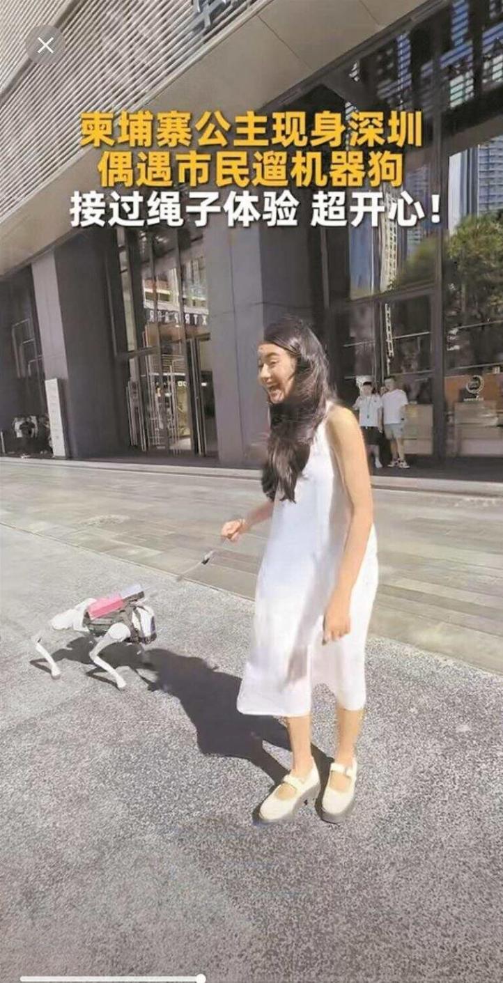 這位公主牽著機器狗逛街,真狗跑來蹭它,逗得她哈哈大笑。她就是柬埔寨公主諾羅敦·珍娜,來深圳玩了一天,全程像普通游客一樣親民[citation:1][citation:3]。