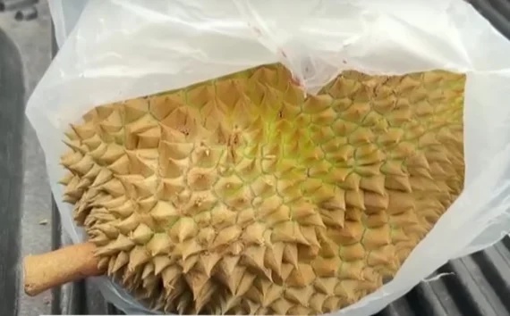 近日,泰國一名48歲的男子騎摩托車回家,路上追尾了一輛皮卡車。他被巨大的沖擊力撞飛,直接臉朝下摔在了皮卡車車廂里的一個榴蓮上,臉上留下了數(shù)十處刺傷。