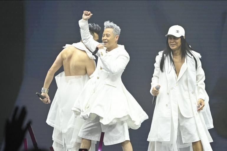 陳慧琳(Kelly)一共十場的香港紅館演唱會27日晚迎來尾場,嘉賓則由草蜢擔任,這也是蔡一杰(杰仔)完成腦部手術后首次公開演出。