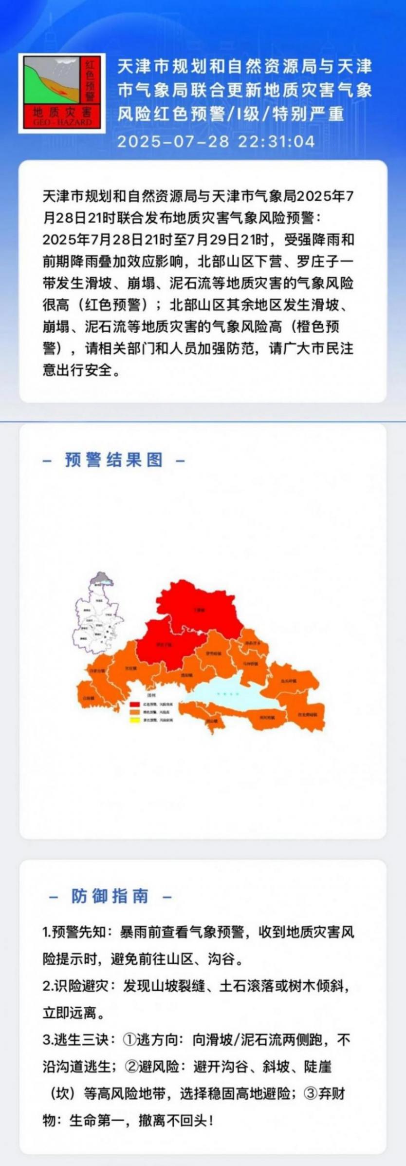 地質災害氣象風險橙色、紅色預警