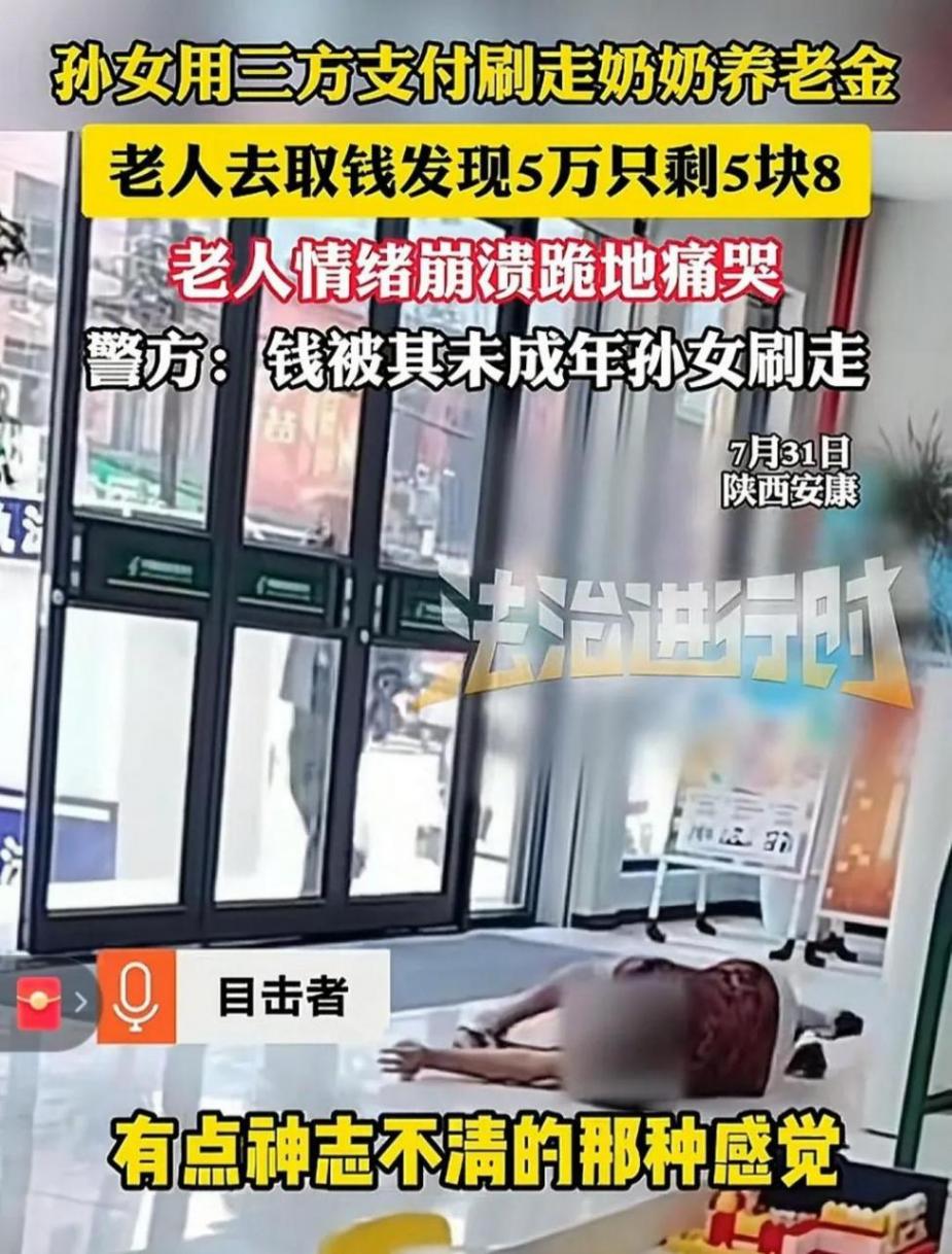 近日,陜西安康一位老人去銀行取錢,發現自己卡里的5萬元竟然只剩下5塊8毛錢,老人崩潰的躺在銀行大廳中哭的死去活來的。