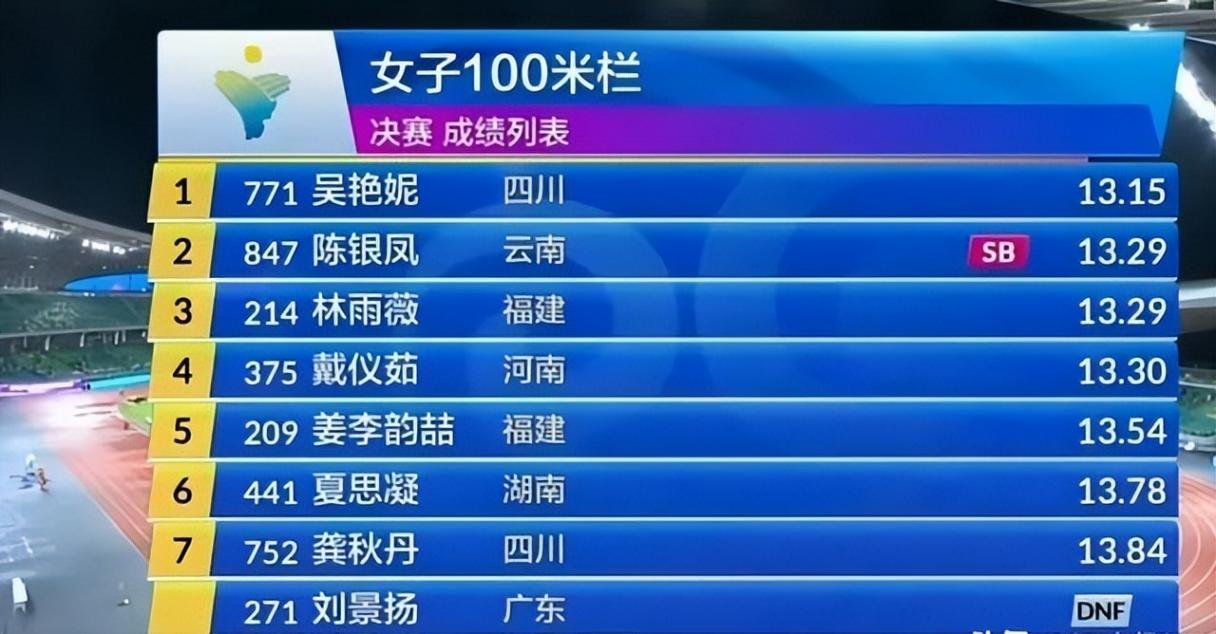 2025年全國田徑錦標(biāo)賽女子100米欄決賽,這是一出寫滿意的戲,賽道濕滑,兩個選手在欄架前轟然倒地,其中一個還是之前一直領(lǐng)先的奪冠熱門,吳艷妮以13秒15的成績衛(wèi)冕,她的對手林雨薇在沖線的時候重重摔倒,帶著擦傷的肩膀和手臂拼下一枚銅牌。