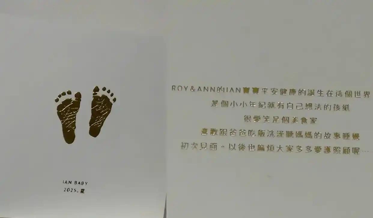 許瑋甯14號曬寶寶腳丫照,配文“均安”,粉絲還沉浸在驚喜中,臺媒稱他們的孩子已經滿月了! 原來夫妻倆是按照閩南習俗“未滿月不公開”,就連他們的親戚朋友都是收到孩子的滿月禮盒才知道他們生娃了。禮盒上的金腳印賀卡寫著“IAN BABY 2025夏”,如果按照時間來算,許瑋甯5月份官宣已經懷孕4個月了,8月孩子滿月,這算是早產兩個月吧,賀卡寫著“平安健康”,也是讓所有人都放心了。