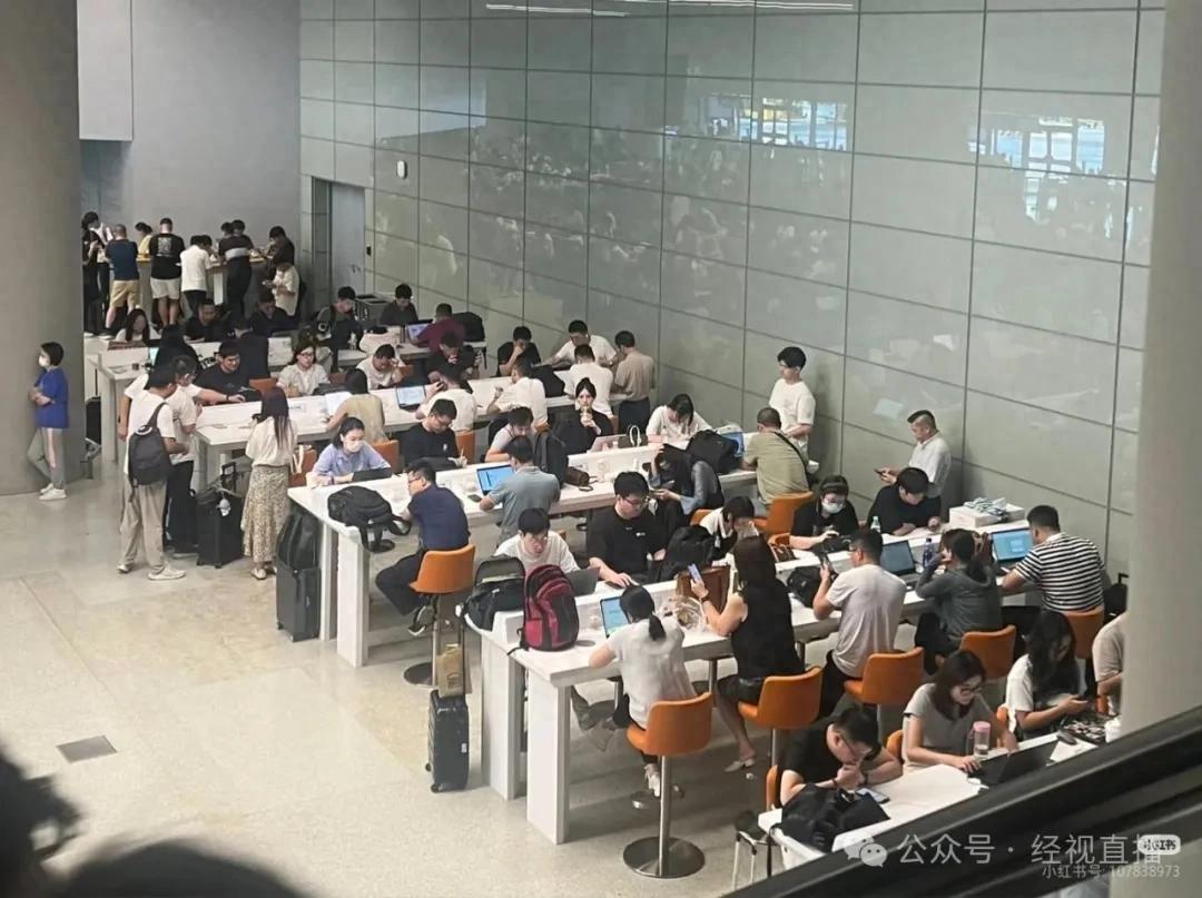 多位網友發帖稱,機場登機口區域彌漫著濃厚的“班味”——大量旅客利用候機時間,在公共充電臺前打開筆記本電腦投入工作。現場照片顯示,充電臺前幾乎座無虛席,旅客們埋頭工作的場景,被不少網友打趣評論道:“還以為是哪個圖書館的自習室”。