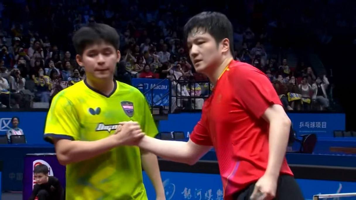第一局林詩棟9:4領先,被樊振東連追7分11:9逆轉了第一局;第二局林詩棟11:8扳回一局,隨后整個比賽的節奏被樊振東掌控,以11:5、11:3、11:4連下三局,大比分4-1拿下了比賽。