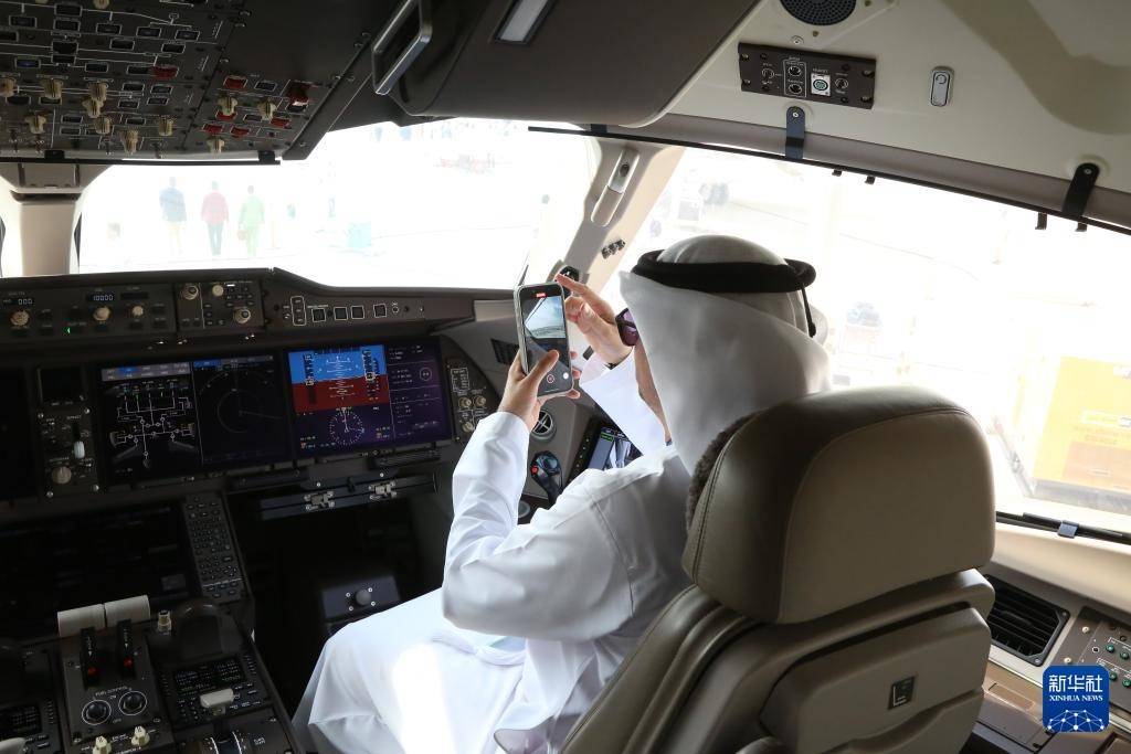 11月17日,在阿聯酋迪拜,觀眾在2025迪拜航空展上體驗C919飛機。